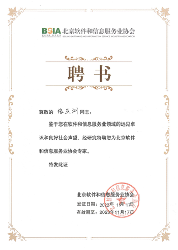集佳のパートナーの張亜洲弁護(hù)士、北京ソフトウェア?情報サービス業(yè)協(xié)會の特別専門家に招聘される |