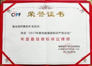 ![]() | 2017強(qiáng)國知識產(chǎn)權(quán)論壇隆重舉行 集佳張亞洲律師斬獲“年度最佳商標(biāo)訴訟律師”殊榮6月3日-4日,2017強(qiáng)國知識產(chǎn)權(quán)論壇在國家會議中心成功舉辦。會上,組委會發(fā)布年度知識產(chǎn)權(quán)領(lǐng)域優(yōu)秀律師,集佳合伙人張亞洲律師被評選為“年度最佳商標(biāo)訴訟律師”... |