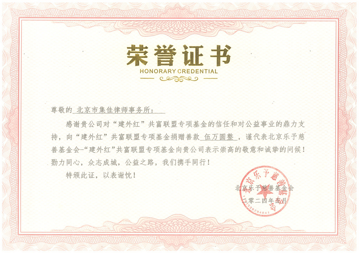 ![]() | 集佳律所積極響應(yīng)街道倡議參與東西部對口幫扶工作 助力烏蘭察布市察右后旗鄉(xiāng)村振興建設(shè)為了推動?xùn)|西部對口幫扶工作深入開展,近日,集佳律所積極響應(yīng)朝陽區(qū)建外街道的倡議,參與內(nèi)蒙古烏蘭察布市察右后旗支援合作考察調(diào)研,并通過街道“建外紅”共富聯(lián)盟專項(xiàng)基金平臺捐資5萬元... |
