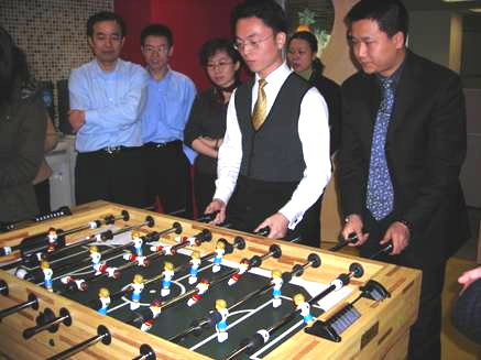 第一屆“小飛俠”杯集佳桌上足球?qū)官愰_幕式于2007年1月4日在集佳總部七樓茶水間隆重舉行。集佳副所長李雷作為本次大賽總顧問,參加了開幕式并為揭幕戰(zhàn)開球。
