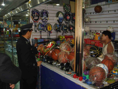 “SPALDING”(斯伯丁)籃球深受世界包括中國在內(nèi)的專業(yè)籃球運動員和業(yè)余愛好者的喜愛,然而也得到了假冒商販的青睞。近日,從集佳獲悉,“SPALDING”(斯伯?。┗@球的生產(chǎn)公司——(美國)SGG利是高有限公司委托其在北京、沈陽、鄭州和當(dāng)?shù)毓ど滩块T聯(lián)合開展了一場大規(guī)模的打假行動,在三地共查獲印有“SPALDING”商標(biāo)字樣的假冒籃球1509個。