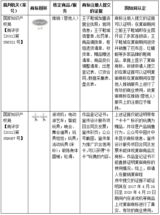 既然國(guó)知局刪除了上述規(guī)定,說(shuō)明將商標(biāo)使用在“贈(zèng)品”上是否構(gòu)成商標(biāo)法意義上的商標(biāo)使用,就需要個(gè)案認(rèn)定。當(dāng)前國(guó)知局對(duì)“贈(zèng)品”的裁判標(biāo)準(zhǔn)可以通過(guò)以下案例窺見(jiàn)一斑: