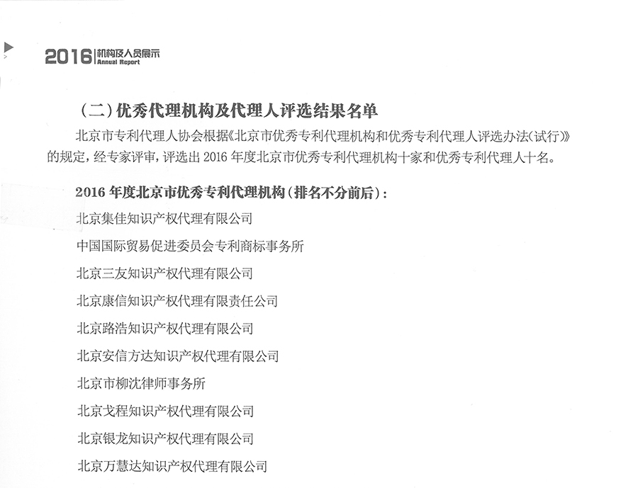 自《北京市專利代理年報(bào)》發(fā)布以來,集佳每年都在不同業(yè)務(wù)領(lǐng)域和不同指標(biāo)排名中保持優(yōu)勢(shì),尤其在發(fā)明專利申請(qǐng)量、有效專利申請(qǐng)量、專利申請(qǐng)業(yè)務(wù)總量等公認(rèn)值得參考的評(píng)價(jià)項(xiàng)目上。而這些指標(biāo)通常是代理機(jī)構(gòu)專業(yè)水平、代理質(zhì)量、市場(chǎng)開拓、服務(wù)質(zhì)量等綜合能力的反映。