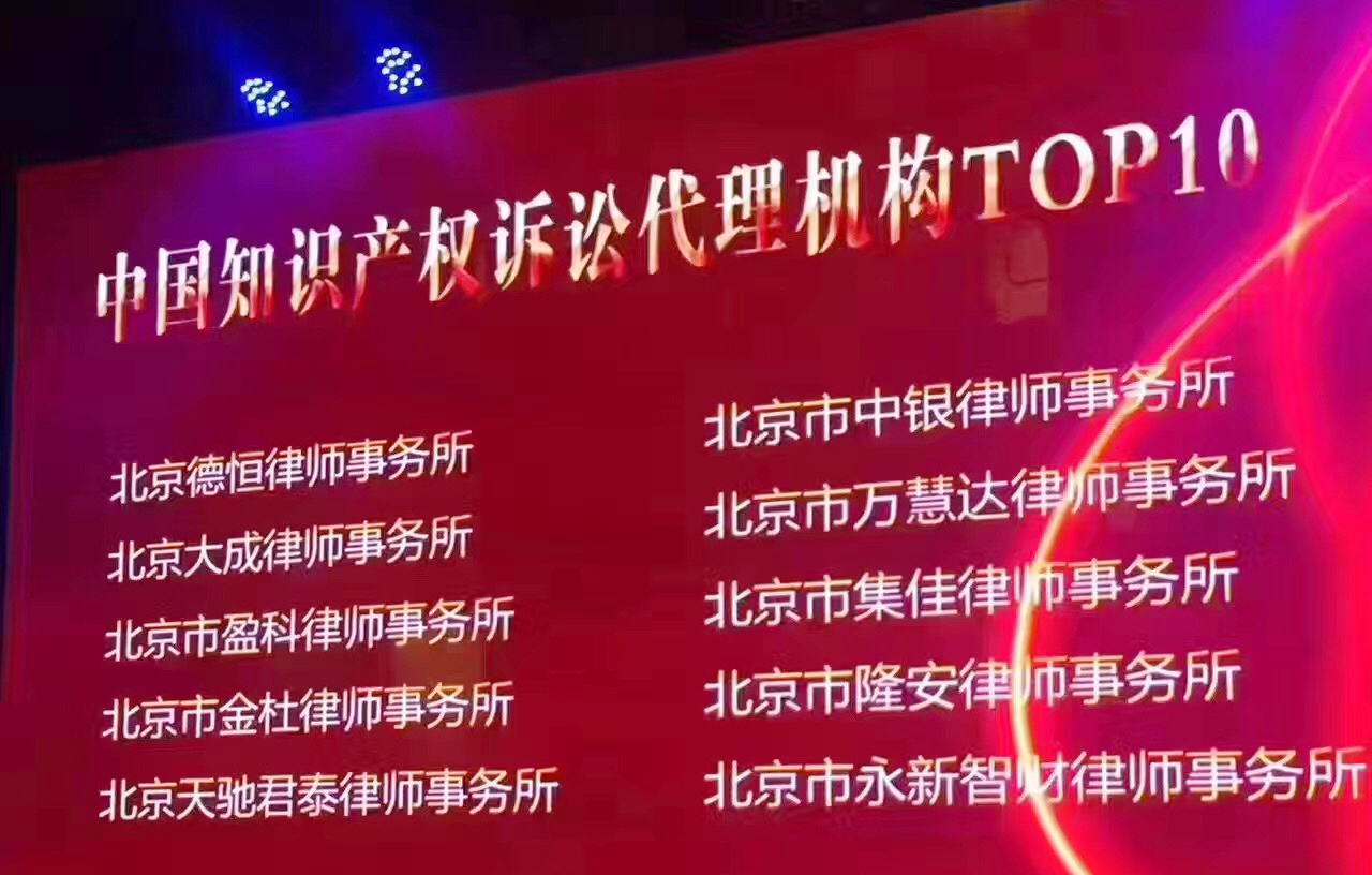 2017年6月23日,備受關注的知產寶“2016年度中國十佳知識產權訴訟代理機構榜單發(fā)布會”在北京隆重舉行,集佳訴訟團隊憑借穩(wěn)健的綜合實力,入選“中國知識產權訴訟代理機構”TOP10和“中國商標行政訴訟代理機構”TOP10榜單。國內知識產權知名法律服務機構,近百位國內外大中型企業(yè)代表,以及36家知名媒體齊聚一堂,共同見證了榜單發(fā)布情況。