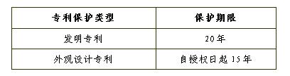美國(guó)專利保護(hù)類型及保護(hù)期限如表1-2-1所示。