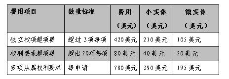 美國(guó)專利申請(qǐng)超頁(yè)超項(xiàng)費(fèi)用如表1-2-5所示。