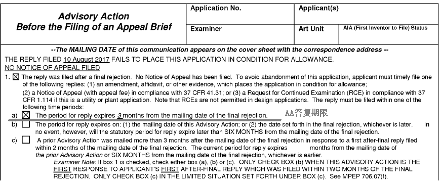 1.3.2.4 Advisory Action傾向性意見(jiàn)(簡(jiǎn)稱AA)