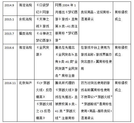 筆者也注意到,在一系列涉及游戲的商標(biāo)侵權(quán)案件中,法院大多認(rèn)定侵權(quán)成立。但這些案件也存在一個(gè)共性,即在先商標(biāo)權(quán)人同時(shí)也是在先游戲的開(kāi)發(fā)者或運(yùn)營(yíng)者。即便不考慮在先注冊(cè)商標(biāo),在先游戲也可以通過(guò)主張知名商品特有名稱的反法仿冒條款獲得救濟(jì)。本文附表三總結(jié)了原告具有在先作品權(quán)利人和在先商標(biāo)注冊(cè)人雙重身份的案例。