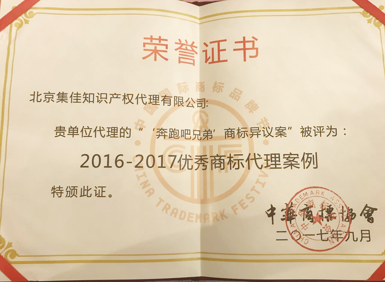 9月3日,正在桂林舉行的2017中國國際商標(biāo)品牌節(jié)再傳捷報(bào),由集佳知識(shí)產(chǎn)權(quán)代理有限公司代理的“奔跑吧兄弟”商標(biāo)異議案獲評(píng)“2016-2017優(yōu)秀商標(biāo)代理案例”。