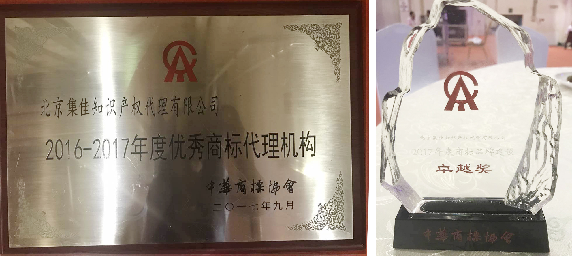 ▲北京集佳知識產(chǎn)權(quán)代理有限公司獲評“2016-2017年度優(yōu)秀商標(biāo)代理機(jī)構(gòu)”