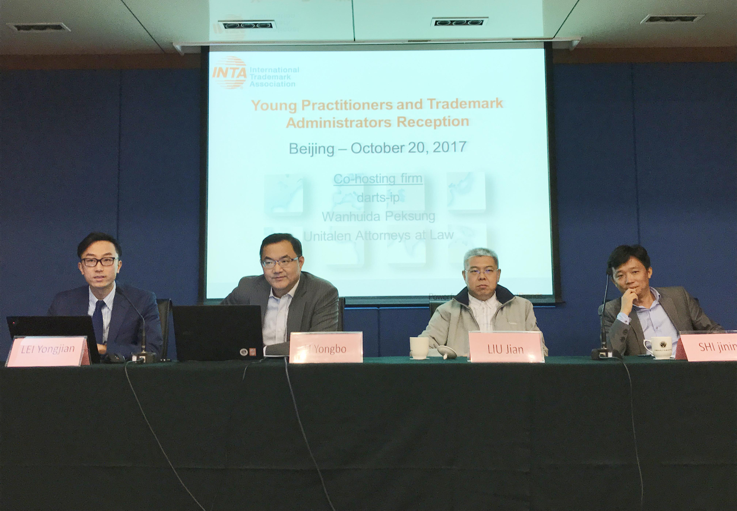 10月20日下午,由INTA(國際商標協(xié)會)主辦,darts-ip 、Unitalen Attorneys at Law (北京市集佳律師事務(wù)所)、Wanhuida Peksung (萬慧達北翔)協(xié)辦的青年從業(yè)者和商標管理人員北京招待會在中國知識產(chǎn)權(quán)培訓(xùn)中心舉行,來自知識產(chǎn)權(quán)領(lǐng)域的60余位從業(yè)者參加了會議。
