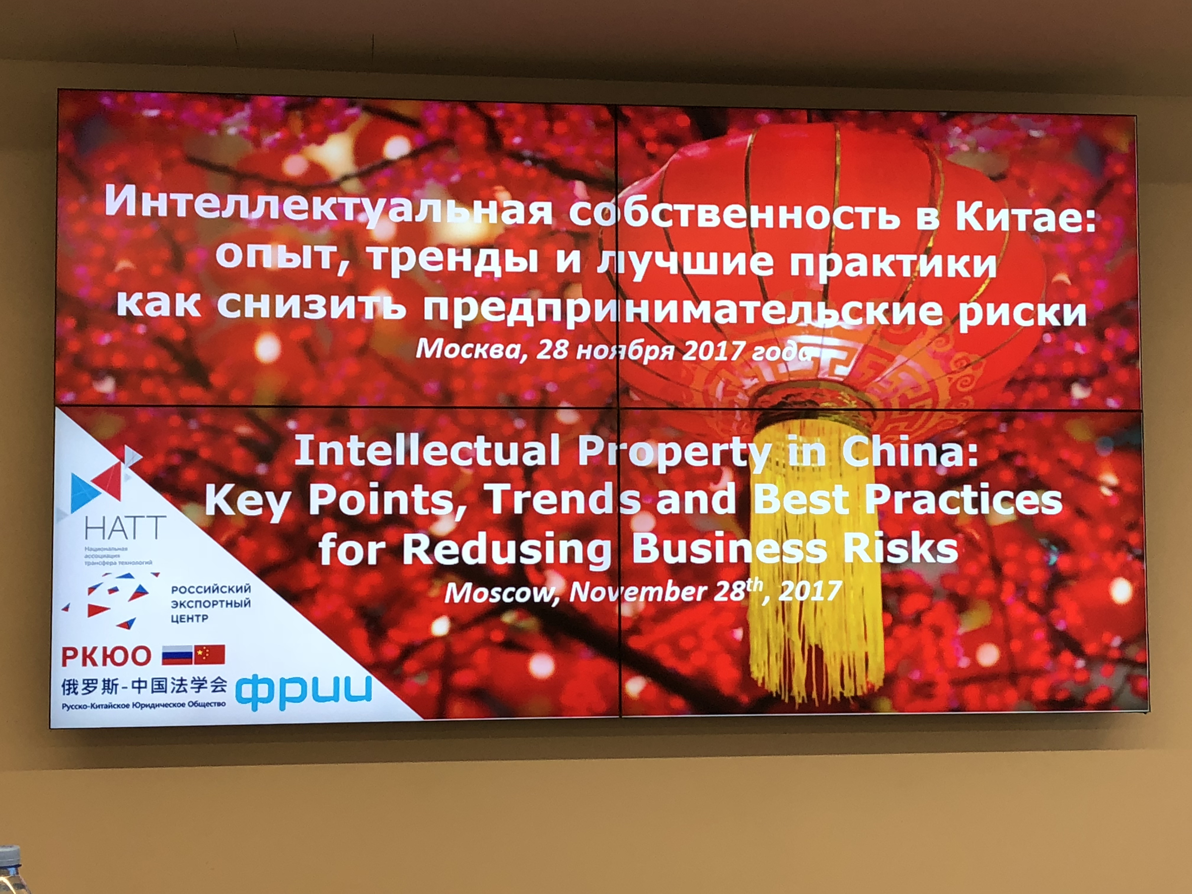 11月28日,應(yīng)俄羅斯技術(shù)轉(zhuǎn)讓協(xié)會(huì)、俄羅斯出口中心、俄羅斯互聯(lián)網(wǎng)活動(dòng)發(fā)展基金以及俄羅斯-中國(guó)法學(xué)會(huì)邀請(qǐng),集佳趙雷律師、潘煒律師共赴莫斯科參加了關(guān)于中國(guó)知識(shí)產(chǎn)權(quán)保護(hù)的專題研討會(huì)。