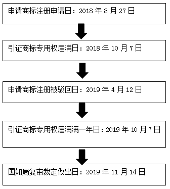 可見,對(duì)于期滿不再續(xù)展的在先商標(biāo),第五十條規(guī)定的一年期的計(jì)算是從該商標(biāo)專用權(quán)屆滿日至做出審查決定之時(shí)。