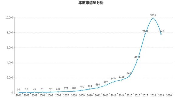 經(jīng)過(guò)檢索,排除處于無(wú)效或撤回等狀態(tài)的專利,篩選當(dāng)前法律狀態(tài)為有權(quán)和審中(即處于授權(quán)、部分無(wú)效、權(quán)利恢復(fù)、實(shí)審或公開(kāi)的狀態(tài))的專利進(jìn)行分析,這部分的總量為38785件。