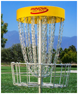 Disc Golf案中原告所要求保護(hù)的產(chǎn)品設(shè)計(jì)是下圖所示的“飛碟高爾夫”(即DiscGolf)運(yùn)動(dòng)的目標(biāo),在運(yùn)動(dòng)中,運(yùn)動(dòng)員需要將飛碟扔進(jìn)該目標(biāo)中。該產(chǎn)品設(shè)計(jì)的主要設(shè)計(jì)特征在于,由中心的桿、下部環(huán)繞桿的籃和懸掛在籃上的一組鏈條組成,鏈條上端連接成圈環(huán)繞在桿的頂部,鏈條下端連接在桿的下端,鏈條自然地下垂成拋物線狀。