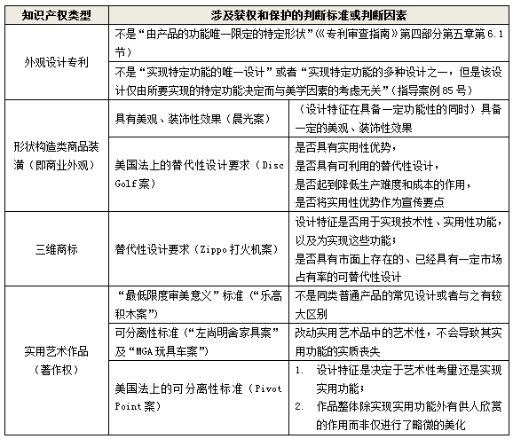 4.1 不同類型知識(shí)產(chǎn)權(quán)對(duì)“非功能性”要求的區(qū)別的總結(jié)