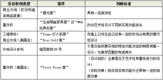 表2 工業(yè)產(chǎn)品外觀設(shè)計(jì)“非功能性”標(biāo)準(zhǔn)排列