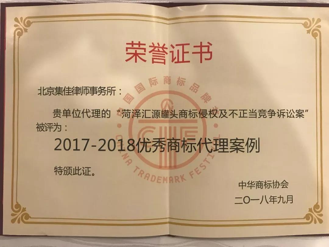 2018中國國際商標(biāo)品牌節(jié)進(jìn)行到第二日,又一令人期待的獎項頒布了。中華商標(biāo)協(xié)會梳理和回顧了過去一年商標(biāo)領(lǐng)域發(fā)生的重大典型事件、案件,從參加申報的眾多商標(biāo)代理案例中評選出了26件年度商標(biāo)典型案例,以此樹立優(yōu)秀案例標(biāo)桿,發(fā)揮示范指導(dǎo)效應(yīng)。集佳律師事務(wù)所代理的“菏澤匯源罐頭商標(biāo)侵權(quán)及不正當(dāng)競爭訴訟案”成功入選“2017-2018優(yōu)秀商標(biāo)代理案例”。