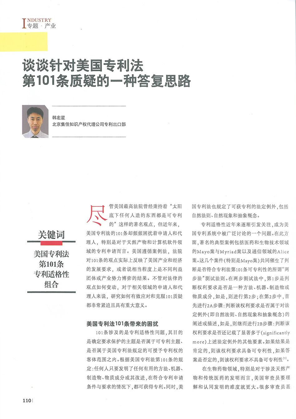 集佳文章《談?wù)勧槍γ绹鴮@ǖ?01條質(zhì)疑的一種答復(fù)思路》在《中國知識產(chǎn)權(quán)》發(fā)表