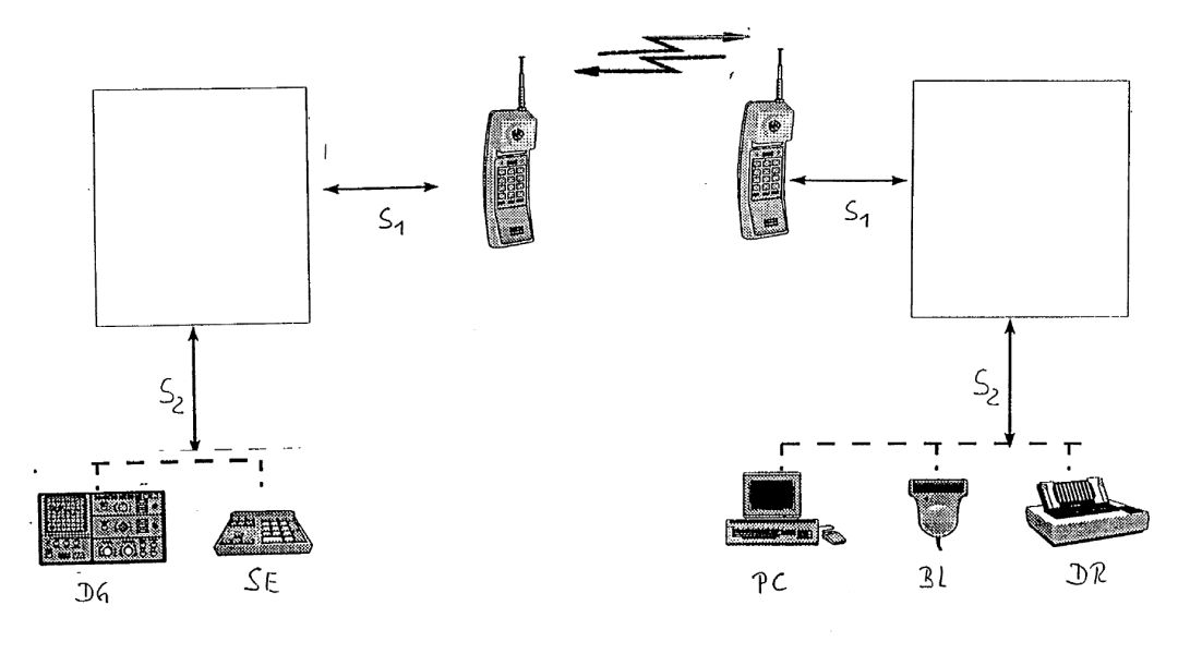 而證據3-1公開了整體的應用場景(如下圖所示),在該應用場景中無線電設備和無線電設備連接,并且無線電設備和個人計算機連接,相當于移動電話機和電腦無線傳輸信息、移動電話機之間無線傳輸信息。雖然證據3-1未公開電腦和移動電話機之間、移動電話機之間傳輸?shù)氖菨h字,但是證據3-2公開了手機和手機之間傳輸漢字信息,而且本領域技術人員在面臨電腦和移動電話機無線傳輸漢字信息的問題時,將證據3-2公開的能夠傳輸漢字的移動電話機結合到證據3-1中,是顯而易見的。因此,權利要求1相對于證據3-1、證據3-2和公知常識的結合不具有創(chuàng)造性。