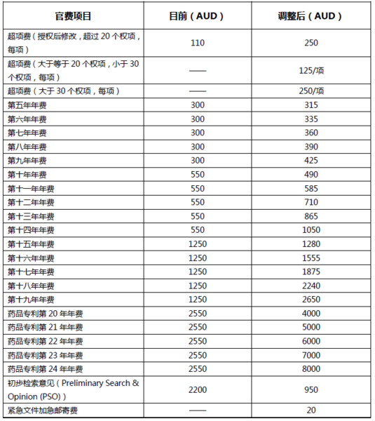 2020年10月1日起,澳大利亞知識產(chǎn)權(quán)局將上調(diào)專利、工業(yè)外觀設(shè)計及商標(biāo)的官費(fèi)(僅有少部分費(fèi)用有所下調(diào))。這次費(fèi)用調(diào)整涉及了電子支付方式(“首選方式”)和通過“其他方式”支付兩種支付方式,在此主要列舉采用電子方式支付官費(fèi)涉及的費(fèi)用調(diào)整項目。