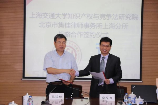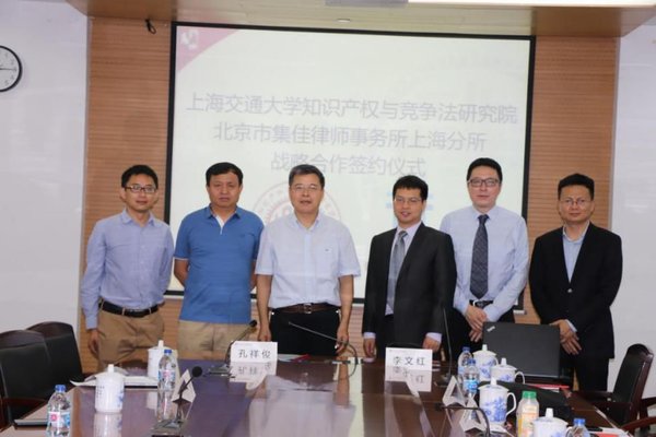 6月26日,北京市集佳律師事務(wù)所上海分所與上海交通大學(xué)知識(shí)產(chǎn)權(quán)與競爭法研究院戰(zhàn)略合作協(xié)議簽約儀式在上海交大徐匯校區(qū)凱原法學(xué)樓隆重舉行。上海交通大學(xué)知識(shí)產(chǎn)權(quán)與競爭法研究院院長孔祥俊教授、劉維副教授,北京市集佳律師事務(wù)所上海分所主任李文紅、資深顧問王俊河、合伙人李擘、合伙人張振軍出席簽約儀式。