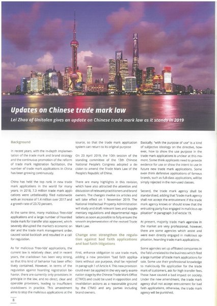 在年會(huì)上,趙雷律師與世界各國的知識產(chǎn)權(quán)界同仁探討了當(dāng)前熱點(diǎn)話題和商標(biāo)發(fā)展趨勢,同時(shí)也向參會(huì)代表分享了集佳近年來在國內(nèi)商標(biāo)領(lǐng)域及境外商標(biāo)實(shí)踐中取得的成績和獲得的經(jīng)驗(yàn),并與很多國家的代表建立了廣泛友好的業(yè)務(wù)聯(lián)系。會(huì)議期間,趙雷律師應(yīng)邀撰寫的文章《Updates on Chinese trade mark law》在年會(huì)??禘CTA Daily》發(fā)表,受到了業(yè)界同仁的好評。
