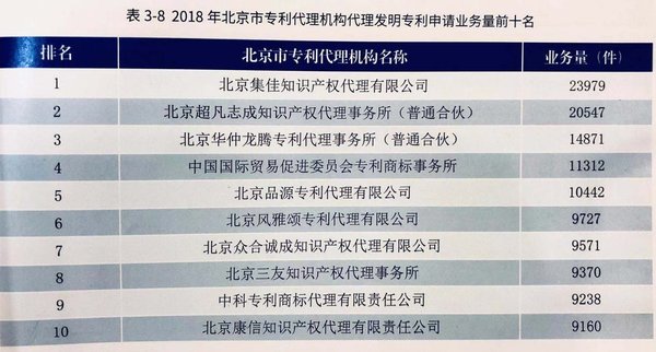 近日,北京市知識產(chǎn)權(quán)局、北京市專利代理人協(xié)會聯(lián)合發(fā)布2018年度《北京市專利代理年報》,2018年集佳穩(wěn)中有增,在北京市專利代理機構(gòu)代理專利申請業(yè)務(wù)總量和多個領(lǐng)域的有效專利量排名中名列前茅,并以23979件的成績,在代理發(fā)明專利申請業(yè)務(wù)量排名中連續(xù)5年蟬聯(lián)第一。
