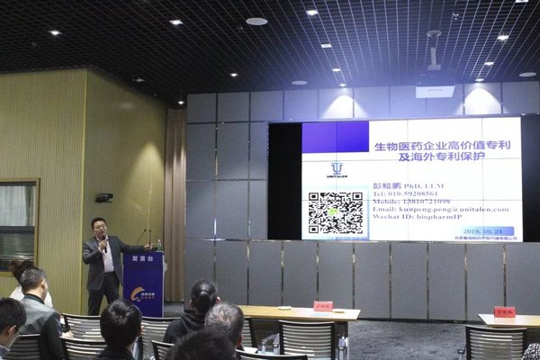 集佳合伙人、專利代理師、中華全國專利代理人協(xié)會職業(yè)培訓師彭鯤鵬博士為參會企業(yè)作“生物醫(yī)藥企業(yè)高價值專利及海外專利”主題培訓。彭鯤鵬博士對各國專利局在生物醫(yī)藥領(lǐng)域的實踐有深入了解,并在涉外專利申請方面擁有豐富經(jīng)驗。他從美國創(chuàng)新藥的專利懸崖熱點問題切入引起參會人員共鳴,并對中國創(chuàng)新和仿制藥制度到藥品審評審批制度改革進行介紹,同時圍繞藥品專利挑戰(zhàn)(專利跟蹤預警、分析、應(yīng)對策略)、專利保護的新思路、高價值專利保護、海外專利保護策略等方面逐一展開,針對企業(yè)目前比較關(guān)注的FTO侵權(quán)風險分析、可專利性分析等進行深刻解讀,就生物醫(yī)藥行業(yè)的典型案例進行了精彩的解析。