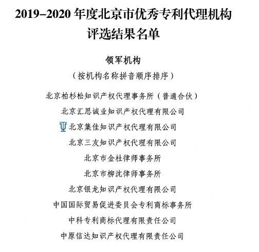 根據(jù)《北京市優(yōu)秀專利代理機(jī)構(gòu)和優(yōu)秀專利代理人評(píng)選辦法》的規(guī)定,北京市專利代理師協(xié)會(huì)組織開(kāi)展了2019-2020年度北京市優(yōu)秀專利代理機(jī)構(gòu)和優(yōu)秀專利代理師評(píng)選工作,經(jīng)各機(jī)構(gòu)申報(bào)推薦、初審、專家評(píng)審、理事會(huì)審議以及名單公示等環(huán)節(jié),最終評(píng)選出20家北京市優(yōu)秀專利代理機(jī)構(gòu)和49名北京市優(yōu)秀專利代理師。