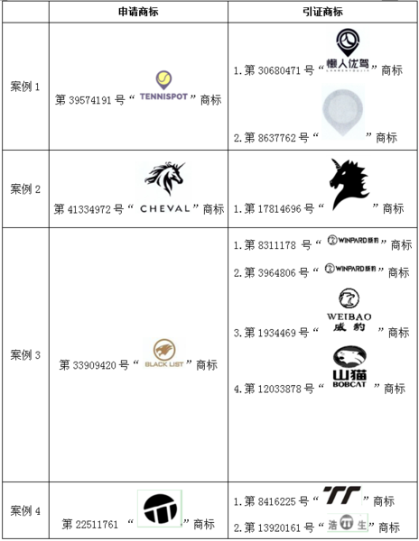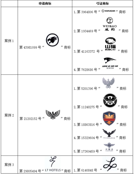 下列申請(qǐng)商標(biāo),均在駁回復(fù)審程序中被國(guó)知局認(rèn)定與引證商標(biāo)未構(gòu)成近似商標(biāo),從而在復(fù)審商品/服務(wù)上被予以初步審定。