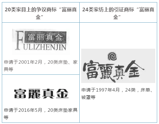 隨后,富麗真金家紡先后對富麗真金家具兩枚注冊商標(biāo),提起無效宣告。