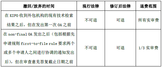 根據(jù)修訂后的專利法,退費適用的時間范圍和退款的范圍如下所示: