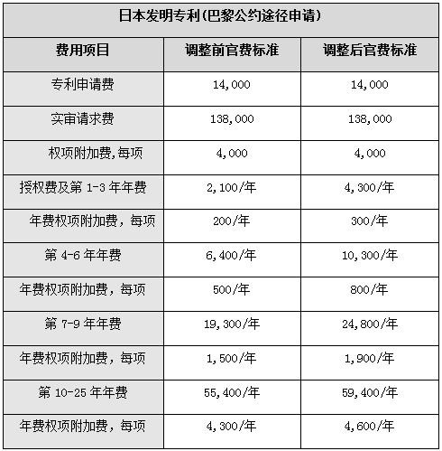 本次官費調(diào)整專利發(fā)明方面主要是上調(diào)了年費,具體如下(幣種:日元):