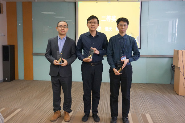 ▲蔡勝有老師為譚天頒獎(jiǎng) ▲二等獎(jiǎng)合影