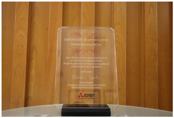 據悉,三菱電機每年在其全球范圍內合作的事務所中評選一至兩家優(yōu)秀事務所進行表彰,集佳是此次獲獎的唯一一家中國事務所,并且是2019年以來第二次獲此殊榮。此次三菱電機表彰的事項為:“在為我社防止外觀設計假冒申請對策而提出的實用的商品目錄公證方法的提案中做出的卓越貢獻”。在與表彰事項相關的工作中,集佳人員工作專業(yè)、細致、認真、及時,得到了客戶的信任和高度評價。