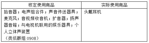 由《類似商品和服務(wù)區(qū)分表》可知,“頭戴耳機”為類似群組0908的規(guī)范商品名稱,而系爭商標(biāo)的核定使用商品也均屬于類似群組0908。很顯然,實際使用商品和核定使用商品完全屬于相同的類似群組,構(gòu)成類似商品。