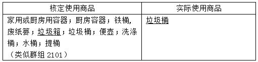 由上表可知,系爭商標(biāo)僅使用在一個商品,即“垃圾桶”上。并且,“垃圾桶”就是其核定使用商品之一,顯然在該商品上的商標(biāo)使用應(yīng)該被認(rèn)可。