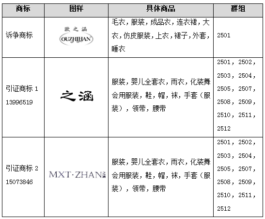 經(jīng)過(guò)審理,法院認(rèn)定:訴爭(zhēng)商標(biāo)由中文“歐之涵”、字母“OUZHIHAN”及圖形組成,引證商標(biāo)一為中文“之涵”引證商標(biāo)二由中文“之涵”及字母“MXT.ZHAN”組成。訴爭(zhēng)商標(biāo)中文部分“歐之涵”完整包含引證商標(biāo)一及引證商標(biāo)二的中文部分“之涵”訴爭(zhēng)商標(biāo)與兩引證商標(biāo)在文字構(gòu)成、呼叫等方面相近?,F(xiàn)有證據(jù)僅能證明第三人成立于2011 年10 月,并無(wú)證據(jù)證明第三人自成立后對(duì)“歐之涵”字號(hào)的使用情況。在訴爭(zhēng)商標(biāo)與引證商標(biāo)核定使用商品類似、商標(biāo)標(biāo)識(shí)近似且引證商標(biāo)已經(jīng)在先實(shí)際使用的情況下,訴爭(zhēng)商標(biāo)與引證商標(biāo)共存容易使相關(guān)公眾對(duì)商品來(lái)源產(chǎn)生混淆誤認(rèn)。故訴爭(zhēng)商標(biāo)與兩引證商標(biāo)已構(gòu)成商標(biāo)法第三十條所指的使用在同一種或類似商品上的近似商標(biāo)。被訴裁定對(duì)此認(rèn)定有誤,本院予以糾正。