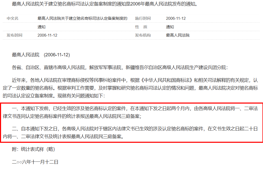首先讓我們回顧一下馳名商標司法保護在程序方面的歷史變化。以下是2006年最高法院發(fā)布的一份文件,該文件是在當時特定場景之下,為解決馳名商標亂象而特別出臺的。