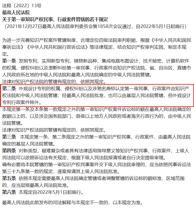 值得注意的是,近期最高法院發(fā)布了《關(guān)于第一審知識產(chǎn)權(quán)民事、行政案件管轄的若干規(guī)定》,該規(guī)定對原有的“集中管轄”進行了大幅度調(diào)整。