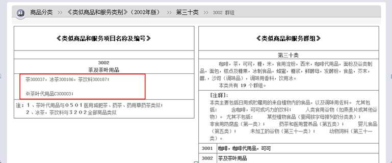 (第三方網(wǎng)站有關(guān)2002年版《類(lèi)似商品和服務(wù)區(qū)分表》3002類(lèi)似群商品展示)