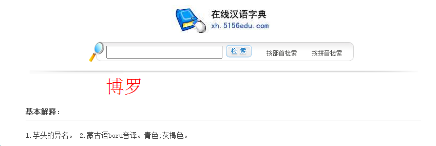 “博羅”除了是縣級(jí)以上行政區(qū)劃名稱(chēng)外,本身也是固有詞匯,其含義為“1.芋頭的異名。2.蒙古語(yǔ)boru音譯。青色;灰褐色”。