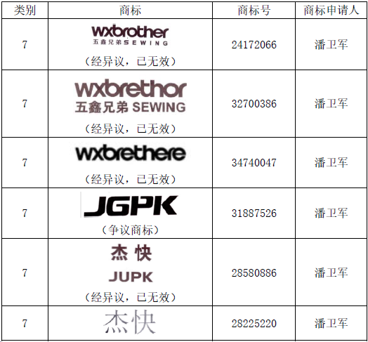 被申請(qǐng)人摹仿“杰克JACK”系列商標(biāo),摹仿“兄弟brother”商標(biāo),多次被提出異議、無效宣告,并且多件商標(biāo)已被不予注冊(cè)及無效宣告,被申請(qǐng)人的惡意是非常明顯的。尤其是第28580886號(hào)“杰快JUPK”商標(biāo)經(jīng)過申請(qǐng)人提出異議,已經(jīng)被認(rèn)定與申請(qǐng)人“JACK”系列商標(biāo)構(gòu)成近似商標(biāo),并依法不予核準(zhǔn)注冊(cè)。