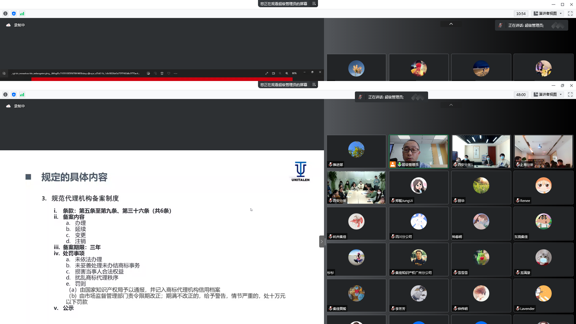 2022年11月15日下午,在于澤輝所長(zhǎng)的帶領(lǐng)下,集佳組織全體員工認(rèn)真學(xué)習(xí)《商標(biāo)代理監(jiān)督管理規(guī)定》,集佳各分所與辦事處同事通過(guò)視頻會(huì)議形式一起參加培訓(xùn)并積極參與討論。