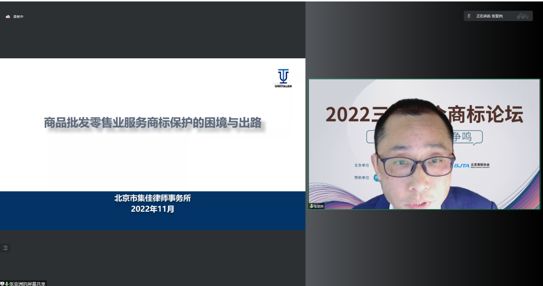 2022年11月26日下午,由北京商標協(xié)會、北京知識產權研究會、北京大學法學院校友會三會首次聯(lián)合舉辦的“商標法研究百家爭鳴——2022年商標論壇”通過線上方式成功舉辦,多位業(yè)內大咖基于中國商標法的法律實踐,進行了一場學術上的百家爭鳴。集佳合伙人張亞洲律師應邀參加論壇并作主題演講。