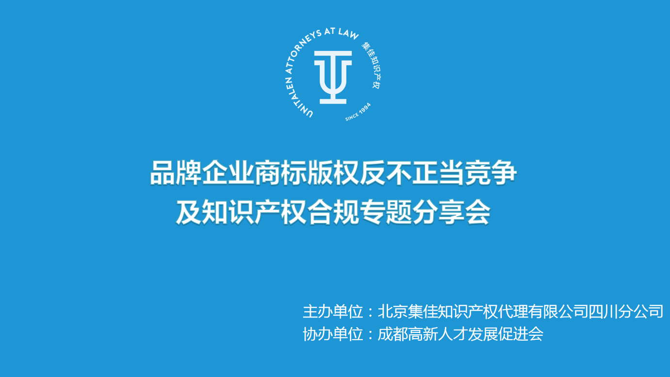 5月26日,由北京集佳知識(shí)產(chǎn)權(quán)代理有限公司四川分公司主辦、成都高新人才發(fā)展促進(jìn)會(huì)協(xié)辦的“品牌企業(yè)商標(biāo)版權(quán)反不正當(dāng)競爭及知識(shí)產(chǎn)權(quán)合規(guī)”專題分享會(huì)在世紀(jì)城新會(huì)展中心順利舉辦。