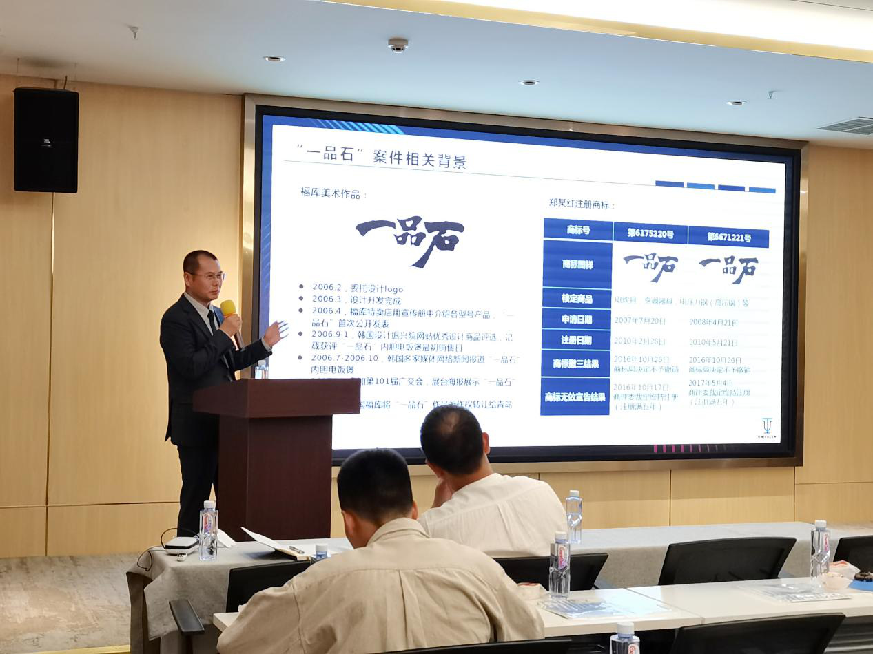 閆春德律師從自己代理的多個(gè)案例為企業(yè)說明反守為攻類、馳名認(rèn)定類、商標(biāo)商號(hào)復(fù)合類等商標(biāo)案件的注意事項(xiàng),特別是“一品石”案件,引起了問答環(huán)節(jié)各參會(huì)嘉賓的積極提問:商標(biāo)字體是否會(huì)侵犯著作權(quán)?立體造型的作品申請外觀專利還是立體商標(biāo)更好?……閆律都耐心地做出解答。