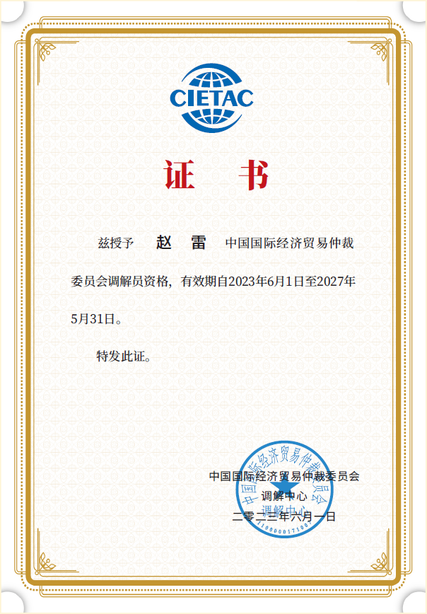 近日,集佳高級合伙人趙雷律師受聘擔任中國國際經(jīng)濟貿(mào)易仲裁委員會新一屆調解員。