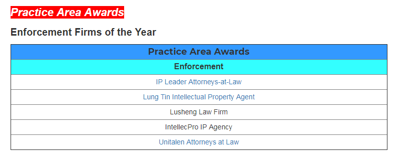Asia IP專注于亞太地區(qū)知識產(chǎn)權(quán)領(lǐng)域的動態(tài)與發(fā)展,在業(yè)內(nèi)具有非常高的權(quán)威性。Asia IP每年通過問卷調(diào)查、核心客戶咨詢等方式匯集世界各地知識產(chǎn)權(quán)專業(yè)人士的反饋和建議,并最終評選出亞太地區(qū)年度領(lǐng)先的優(yōu)秀知識產(chǎn)權(quán)事務(wù)所及頂級專家,其評選結(jié)果對企業(yè)在亞太地區(qū)開展知識產(chǎn)權(quán)事務(wù)具有重要的參考和指導(dǎo)意義。
